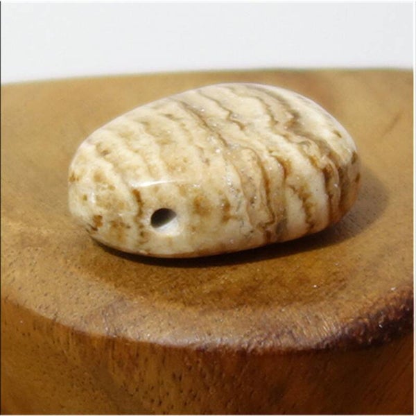 Aragonit gebohrt mit 80 cm Band & Jutesäckchen