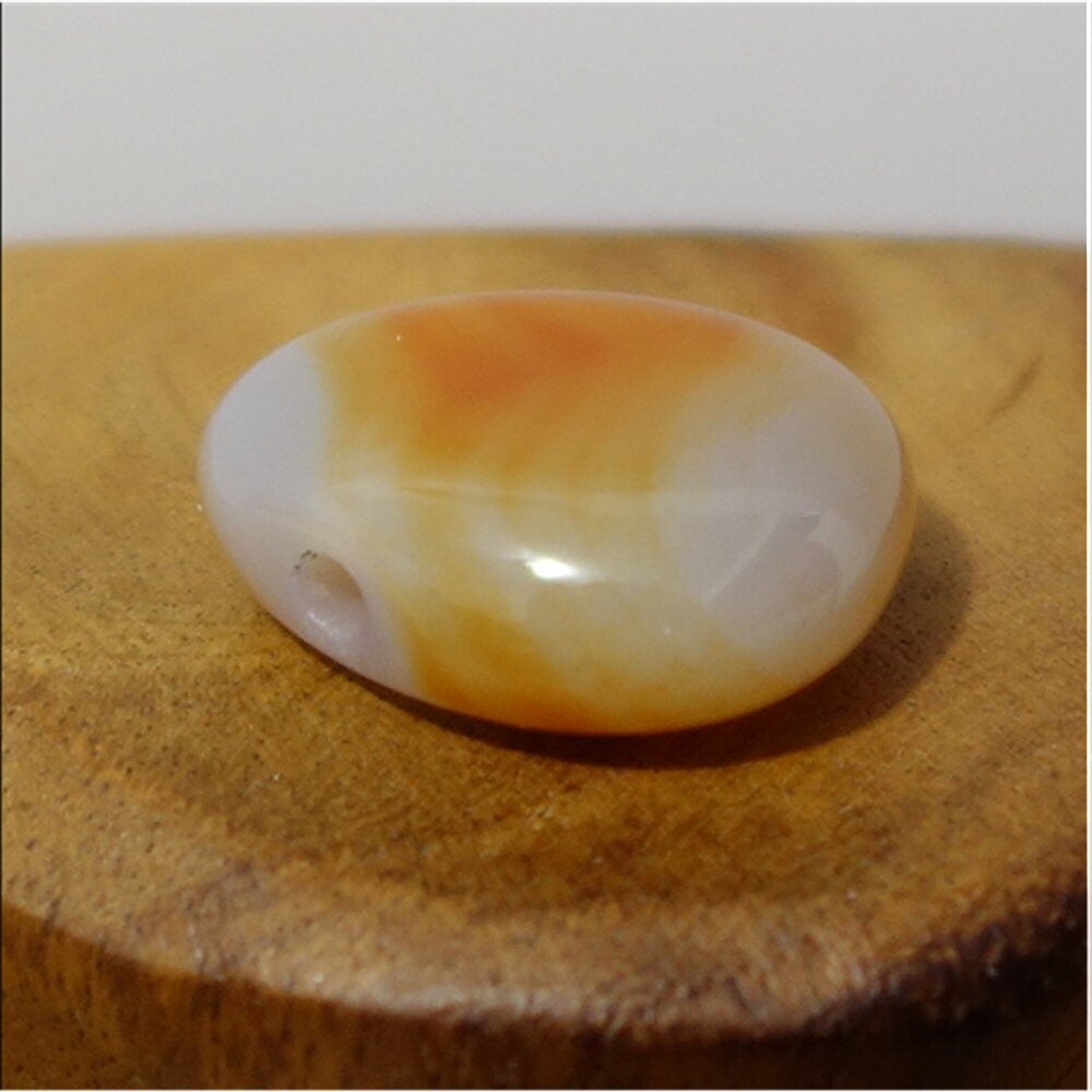 Karneol gebohrt mit 80 cm Band & Jutesäckchen