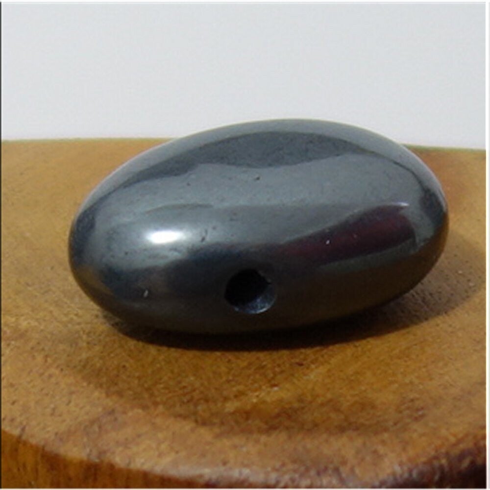Hämatit gebohrt mit 80 cm Band & Jutesäckchen