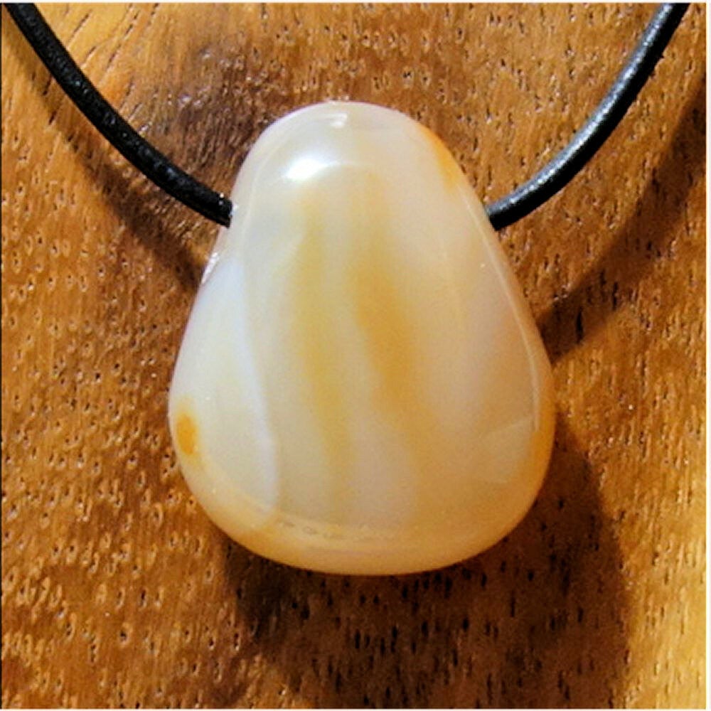 Geliefert mit einem ca. 80 cm langen Lederband oder Baumwollband (schwarz) & Jutesäckchen, direkt tragbar als Anhänger.