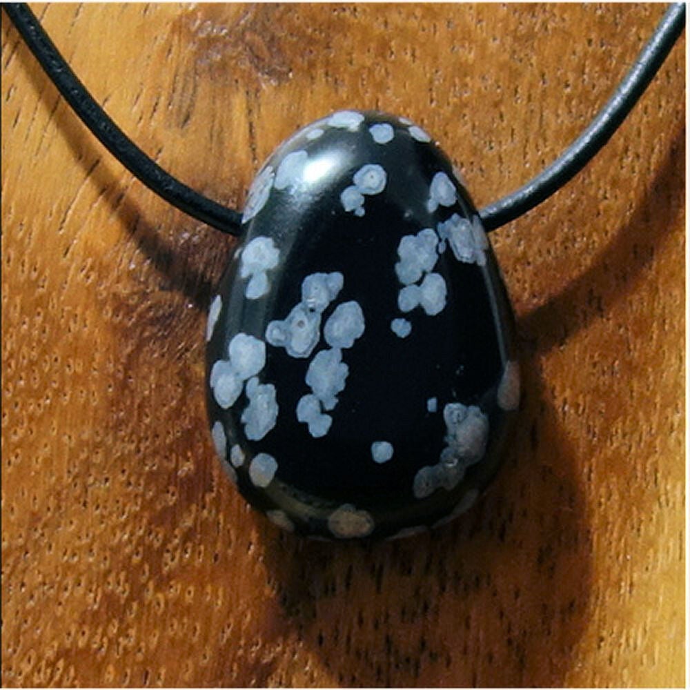 Schneeflockenobsidian gebohrt mit 80 cm Band & Jutesäckchen