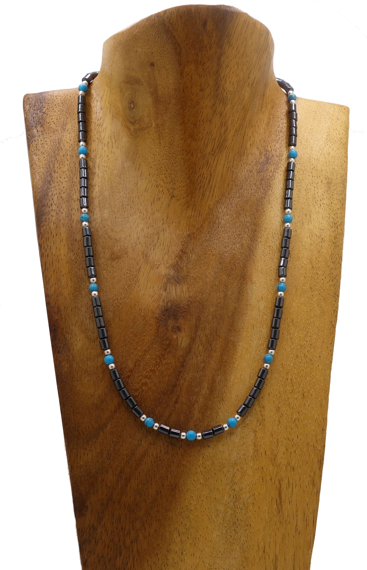 Halskette aus Hämatit, Howlith & Silber