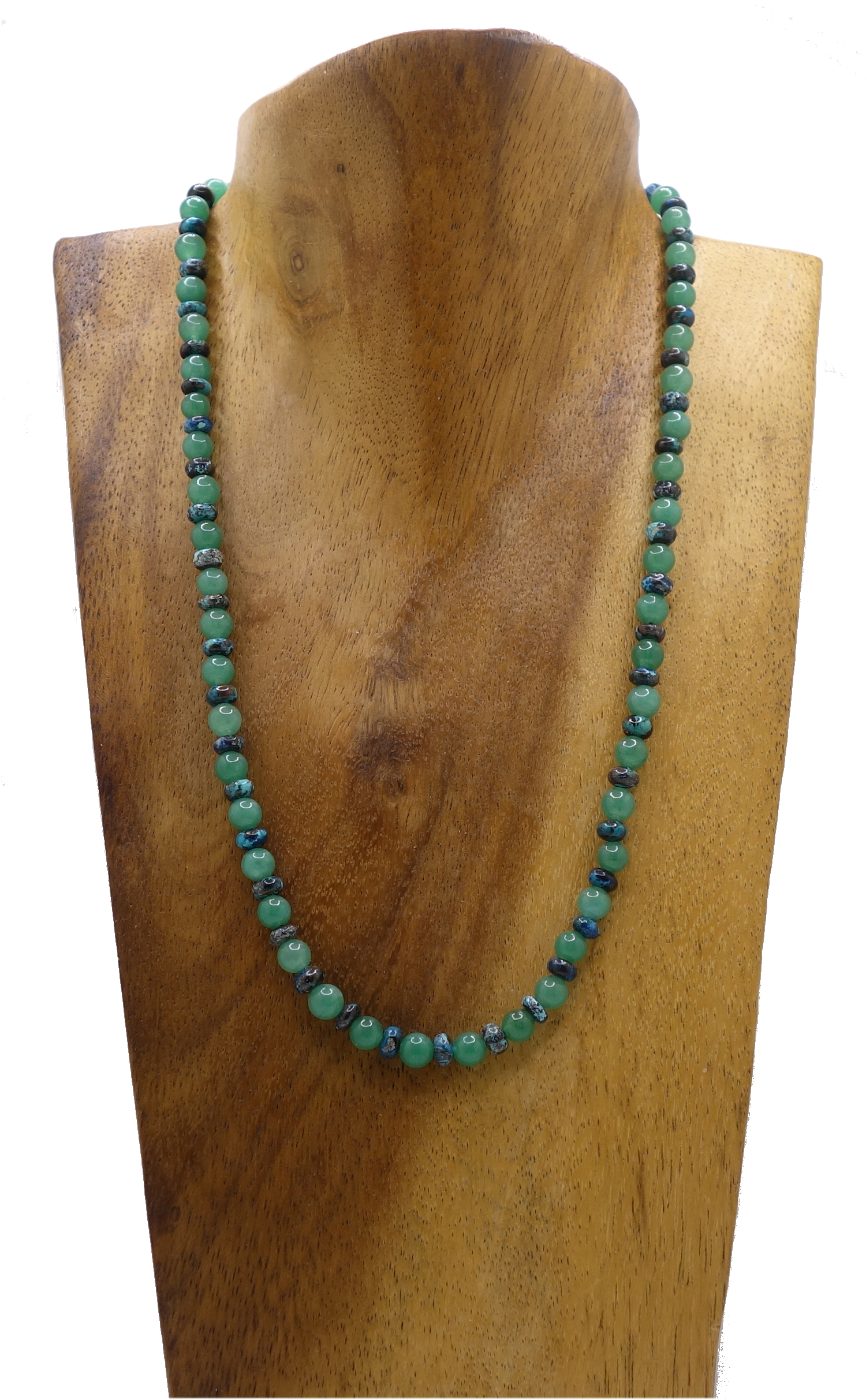 Halskette aus Aventurin Kugeln (Ø 6 mm) & Chrysokoll Rondelle (Ø 6 mm) aufgezogen auf hochw. Juwelierdraht.