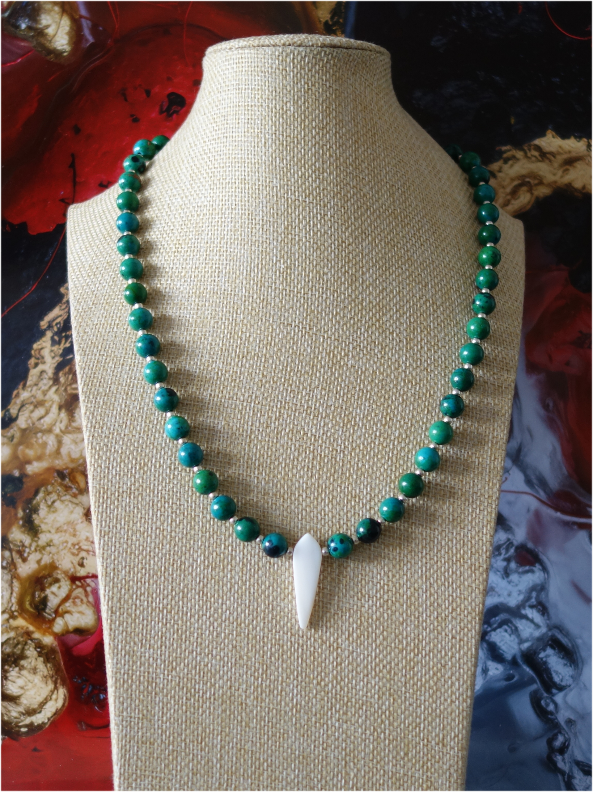 Halskette aus Chrysokoll, Muschel & Silber