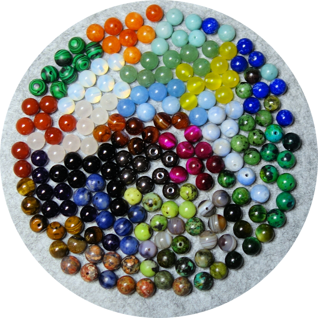 25 Edelsteinsorten (je 8 Stück, 8 mm).