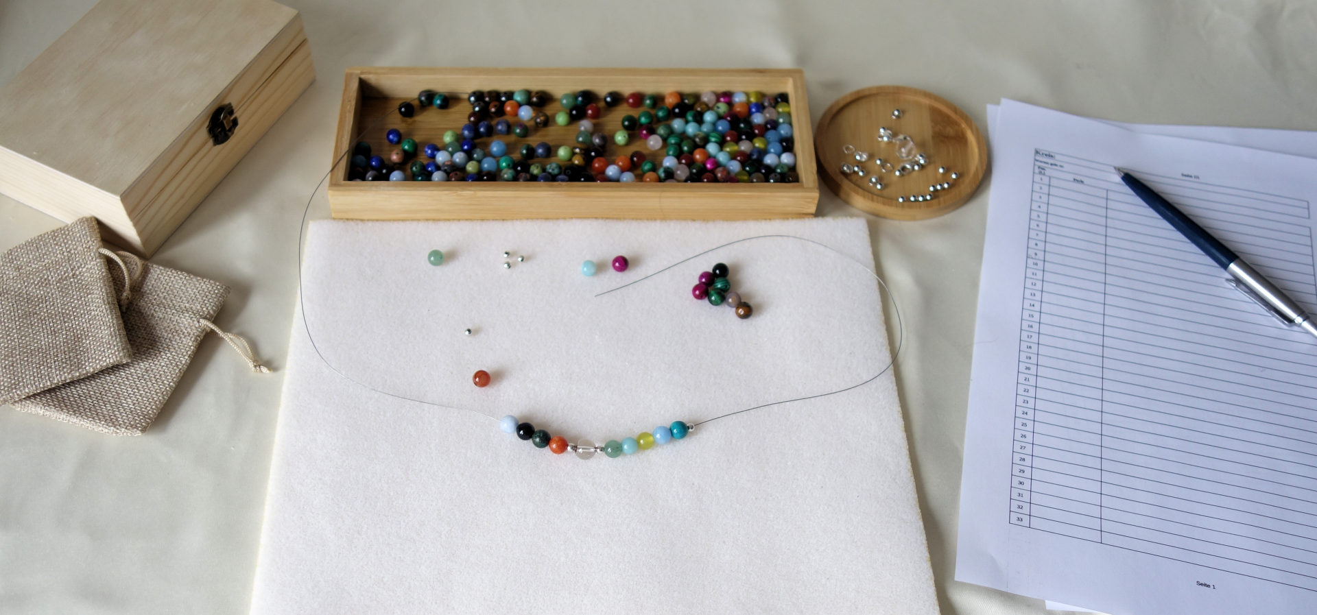 Begib dich auf deine persönliche Reise der Transformation. Dieses vollständige Set enthält alles, was du benötigst, um nicht nur eine, sondern deine ersten beiden kraftvollen Ketten nach der Anleitung zu erschaffen. Mehr als ein Produkt – es ist der Beginn einer bewussten und nachhaltigen Praxis.